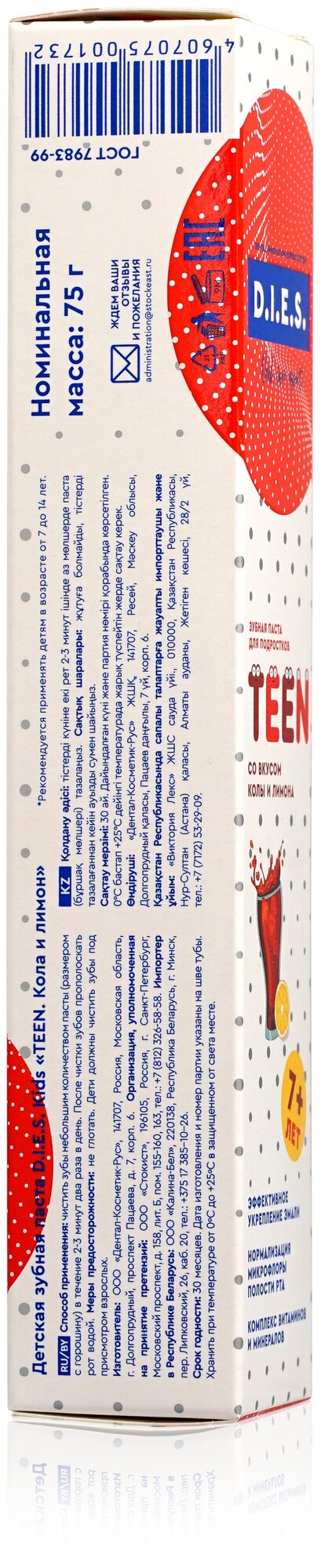 Зубная паста D.I.E.S. для детей, Кола - Лимон, 7+ , 60 мл. информация: