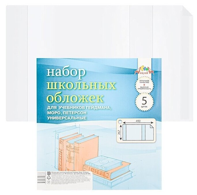 Набор обложек 5 шт д/учеб..Гейдмана,Моро,Петерсон.(267х490) ПВХ плотность 110 мкм информация: