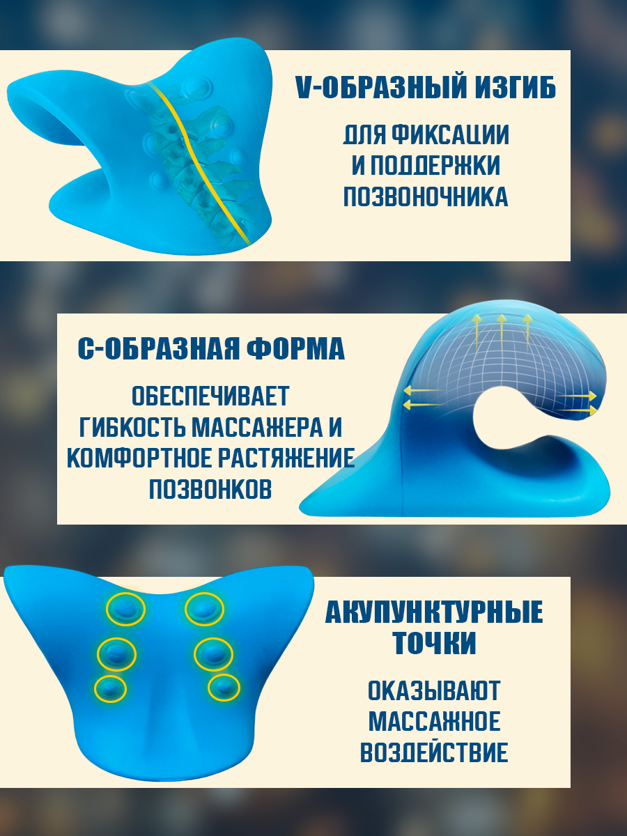 10 цен на Ортопедическая подушка/ Подушка массажёр/ Массажер для головы и шеи/ Анатомическая/ опора для шеи