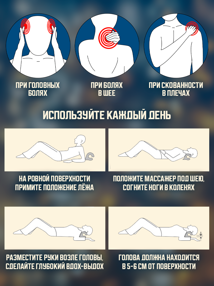 Ортопедическая подушка/ Подушка массажёр/ Массажер для головы и шеи/ Анатомическая/ опора для шеи информация:
