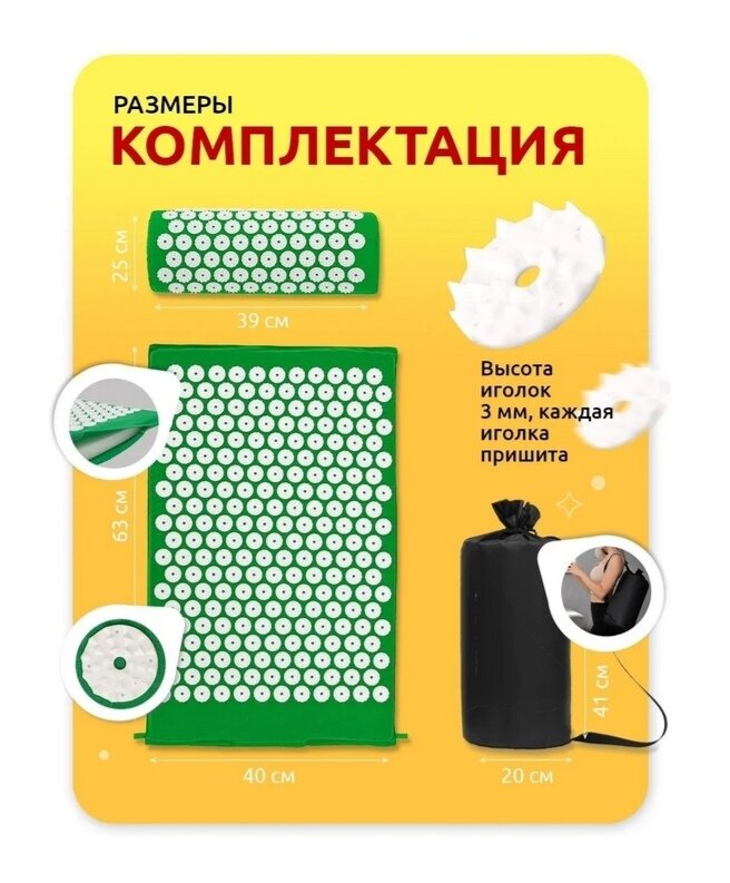 10 цен на Массажный набор аппликатор Кузнецова 3 в 1 64.5x40x3 см, зеленый