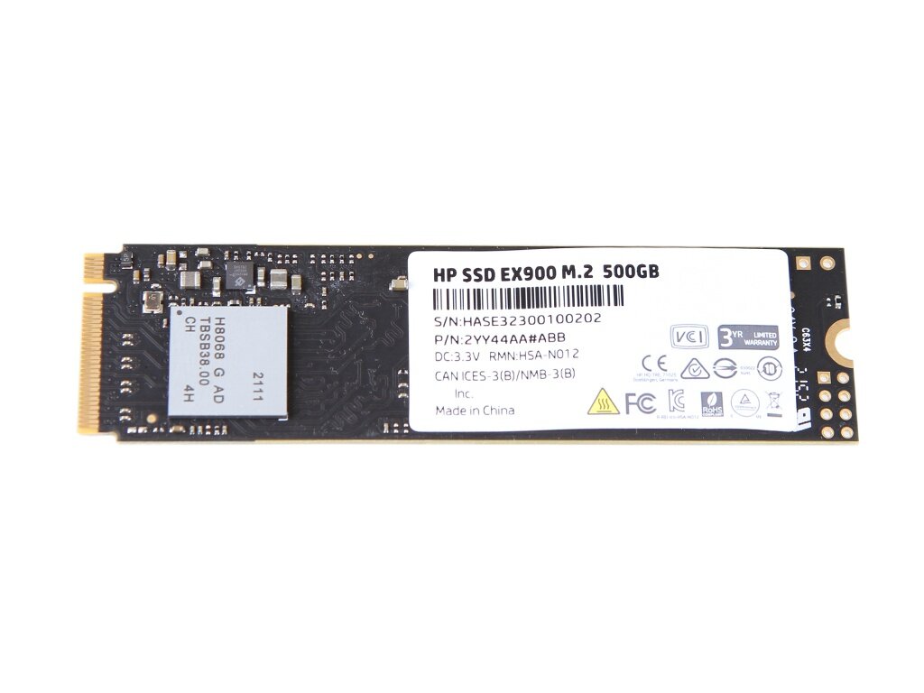 SSD диск HP M.2 EX900 500 Гб PCIe Gen3x4, NVMe1.3 3D TLC (2YY44AA)
