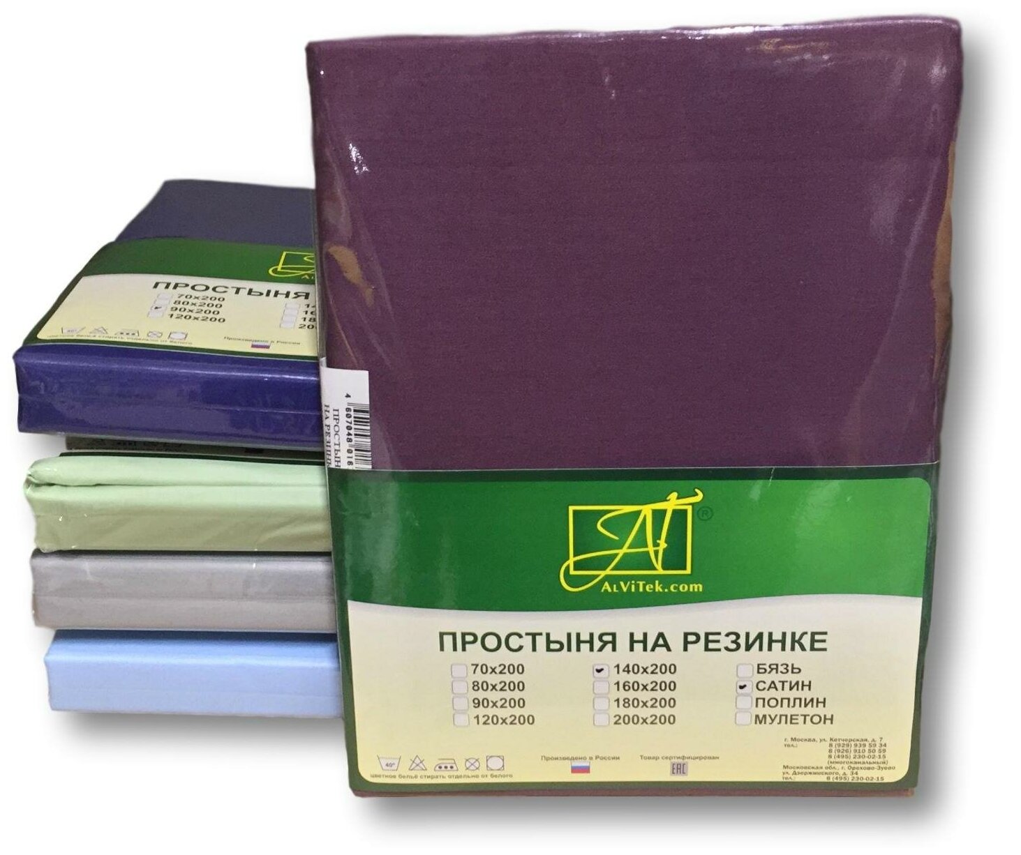 Простынь на резинке/140x200/сатин/натяжная/наматрасник/простыня/хлопок/Альвитек
