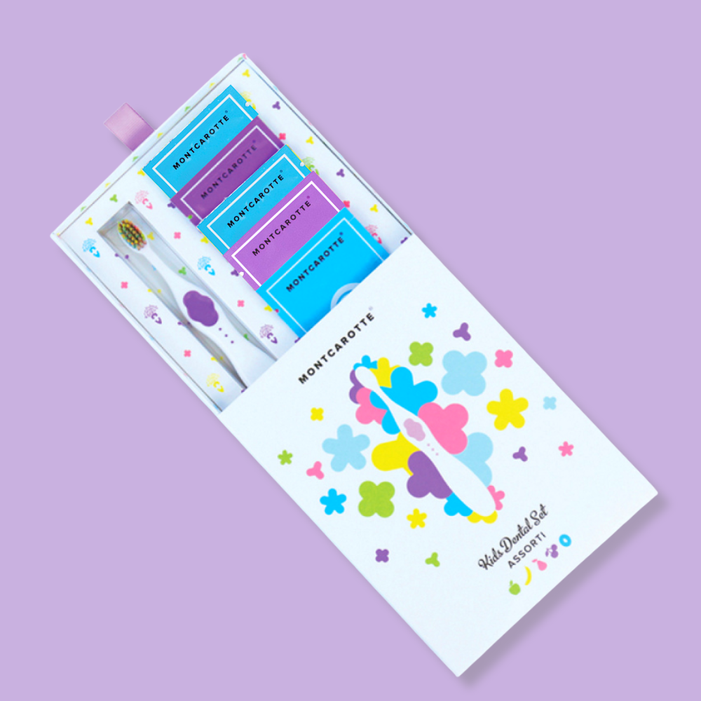 Подарочный набор Ассорти 0+ детская зубная щетка и детская зубная паста, Монткаротт, Италия, Южная Корея, MontCarotte