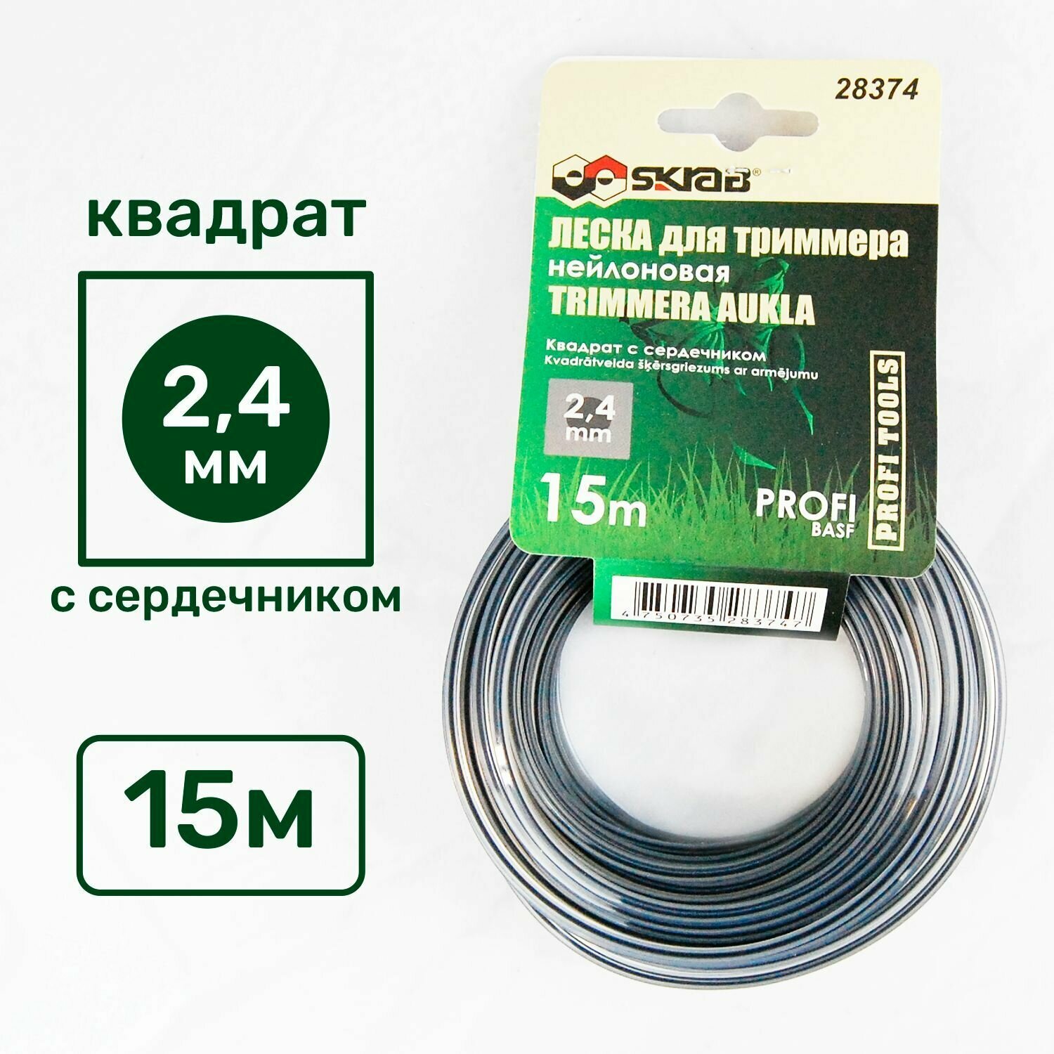 Леска для триммера 2,4 мм x 15 м квадрат сердечник профи SKRAB 28374 информация: