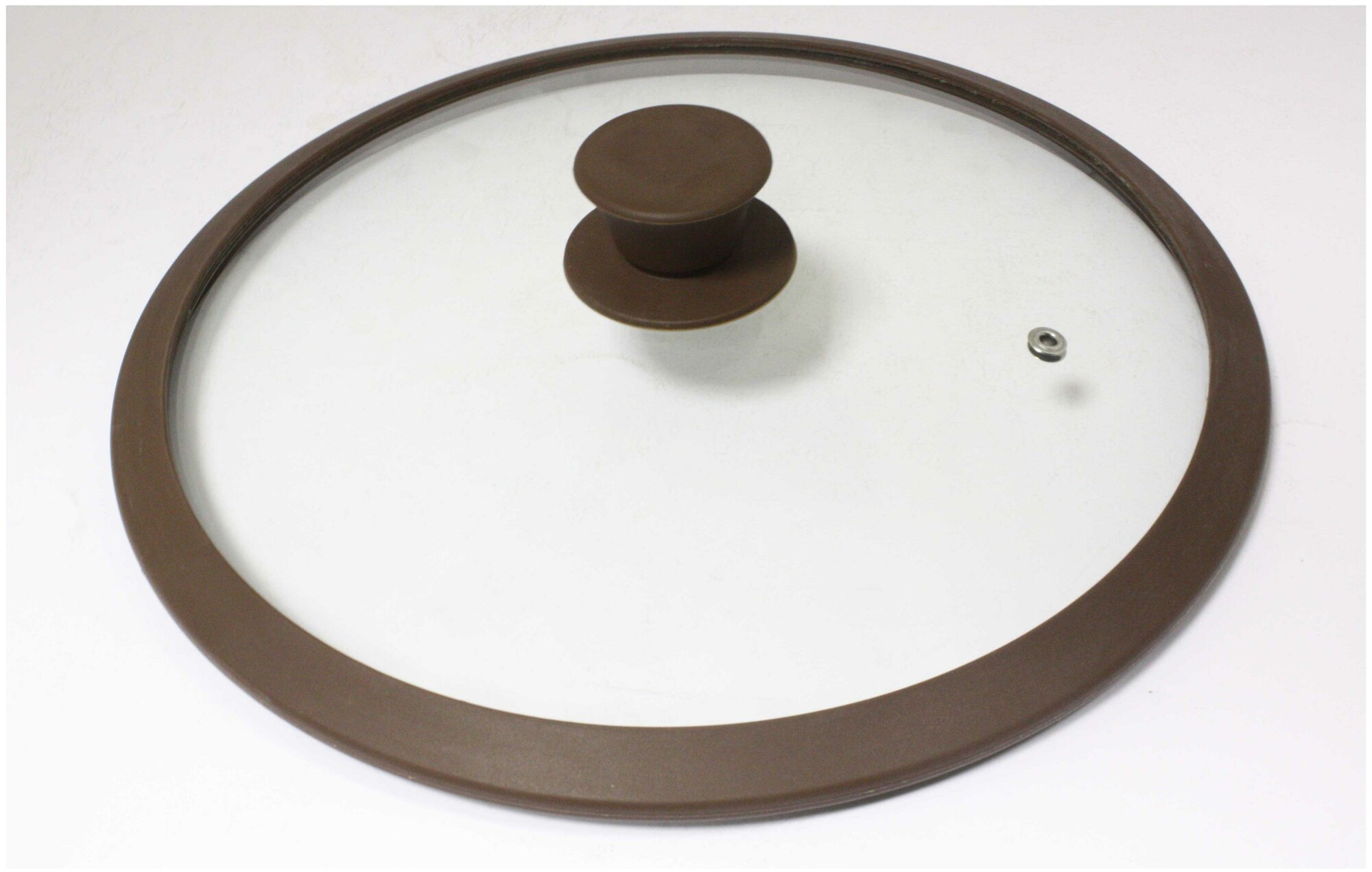 Крышка TimA стеклянная с силиконовым ободком, д.20см, с пароотводом, коричневая