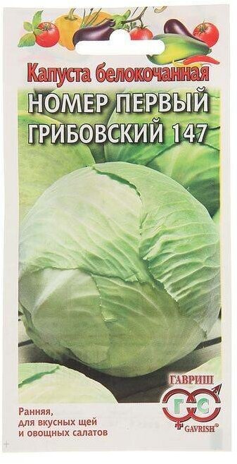 Семена 10 упаковок! Капуста б/к Грибовский 147 №1 0,5 г ранн (Гавриш) Традиция информация: