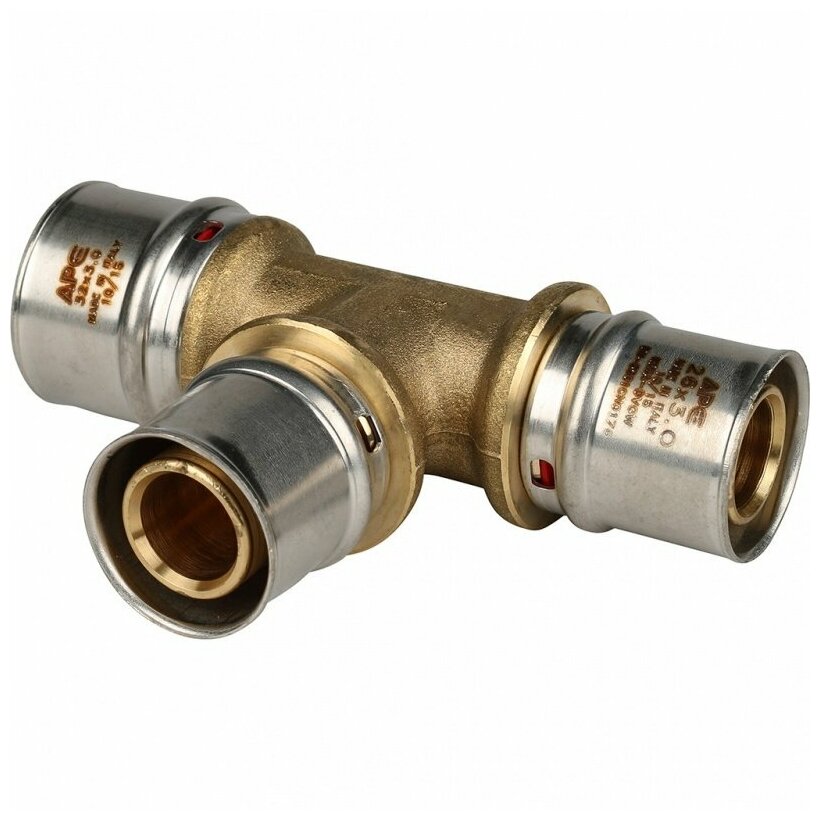 Тройник переходной 32х26х26 для металлопластиковых труб прессовой ФУМ лента 10м