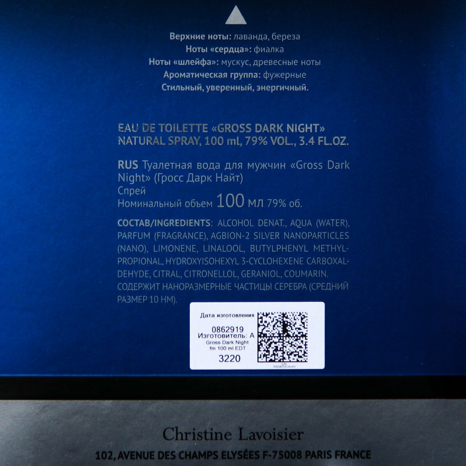 Туалетная вода мужская Gross Dark Night, 100 мл Christine Lavoisier Parfums 7085750 .