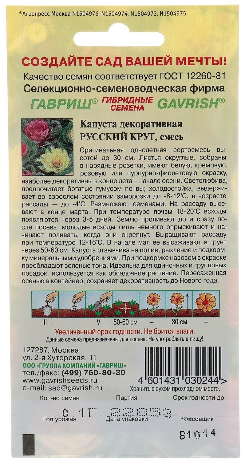 Отзывы на Семена 10 упаковок! Капуста декор. Русский круг 0,05г Одн 30см (Гавриш)
