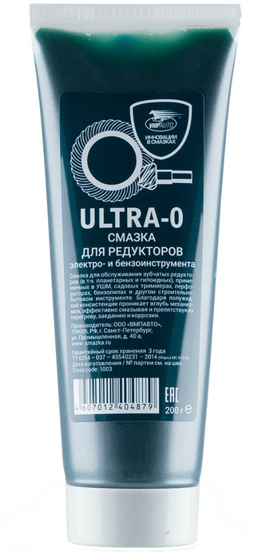 Смазка редукторов для электроинструмента ВМП "Ultra-0" МС4115, 200 г, туба 1003./В упаковке шт: 1