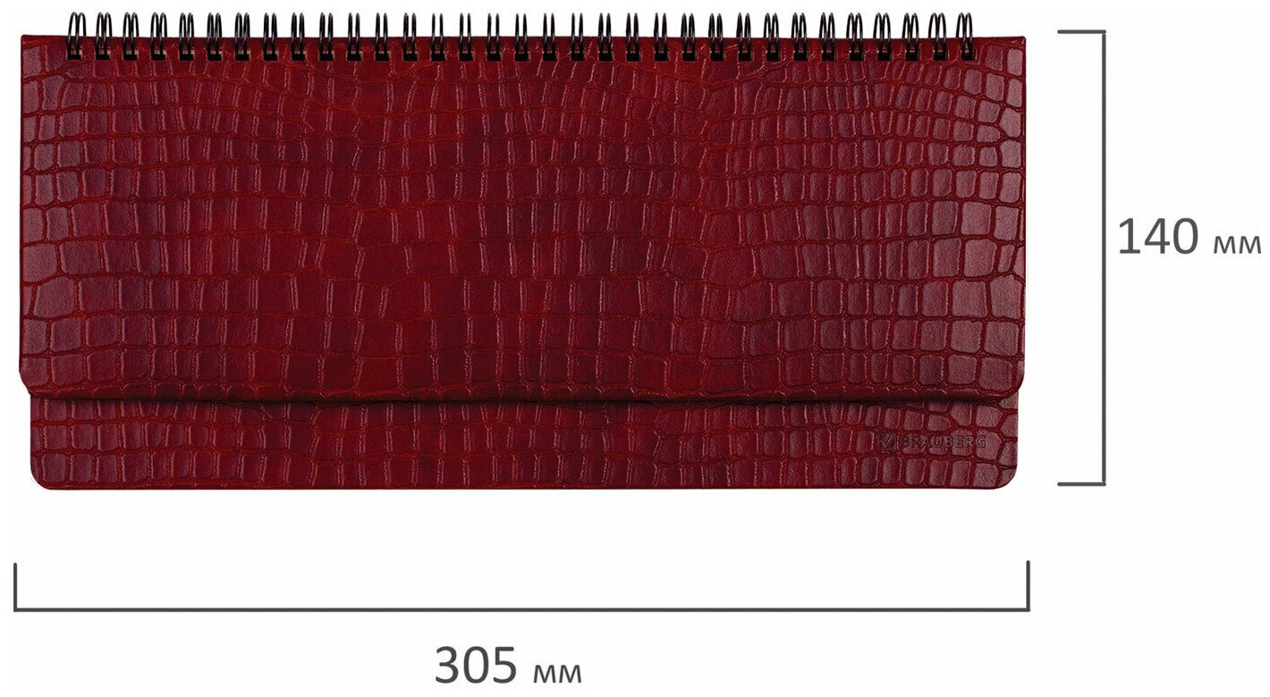 Планинг настольный BRAUBERG недатированный, 140х305 мм, "Alligator", под матовую кожу крокодила, 60 л., красн 604 ₽