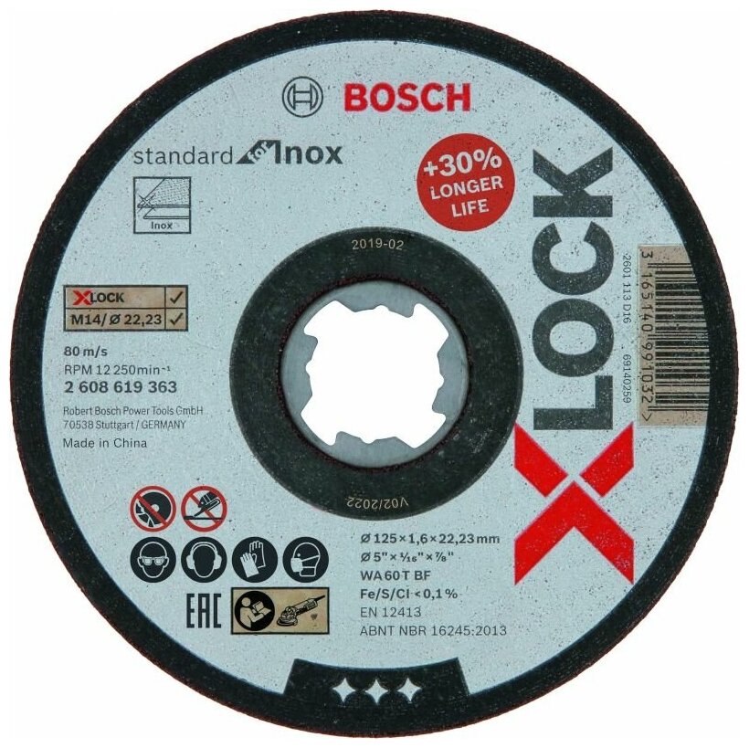 Диск отрезной BOSCH Standard X-lock 2608619363,125х1.6 10шт информация: