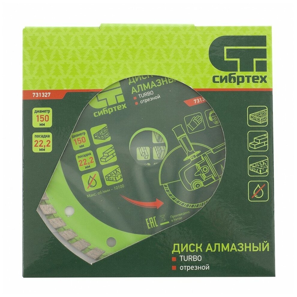 Отзывы на Диск алмазный отрезной Turbo, 150 х 22,2 мм, сухая резка// Сибртех/// 731327