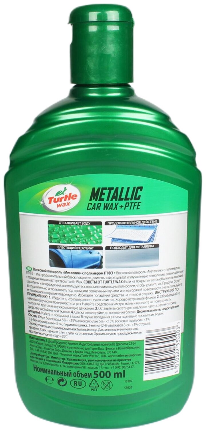 Turtle Wax Восковой полироль Металлик + Ptfe CAR WAX Metallic+ptfe 500ML 53020 .
