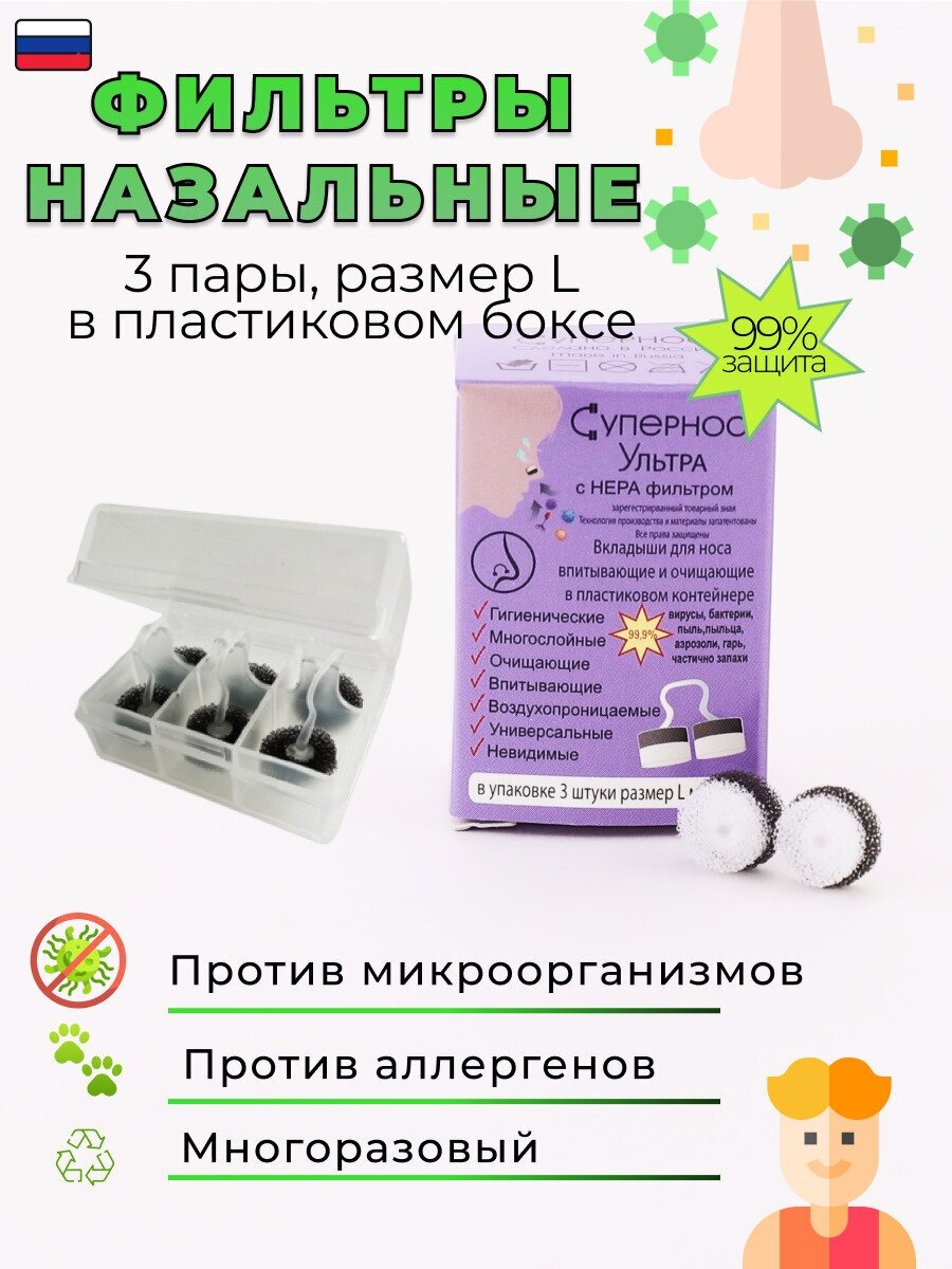 10 цен на Фильтры для носа Супернос Ультра против аллергии и вирусов. Размер большой L