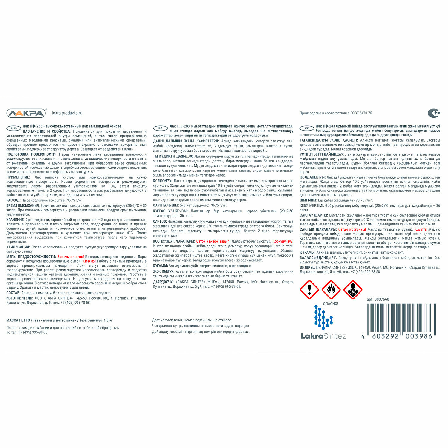 Лак алкидный Лакра ПФ-283 1,8кг информация:
