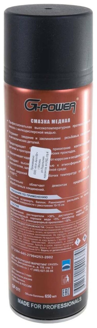 Смазка медная G-POWER высокотемпературная 511 650 мл GP511 информация: