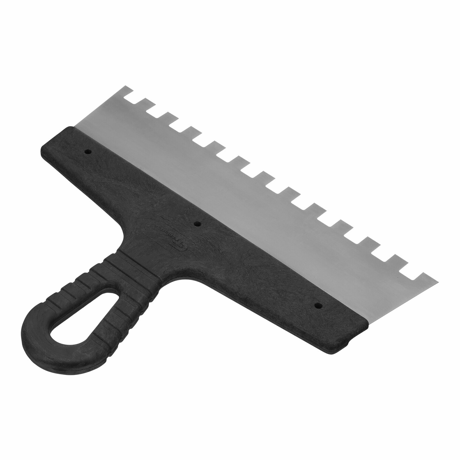 Шпатель из нержавеющей стали, 250 мм, зуб 10 х 10 мм, пластмассовая ручка Сибртех информация: