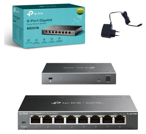 | Дополнительная информация | коммутатор TL-SG108E, адаптер питания, руководство по настройке, резиновые ножки |