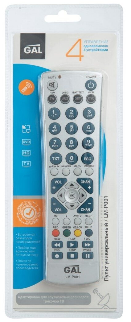 Пульт универсальный GAL LM-P001 серебристый информация: