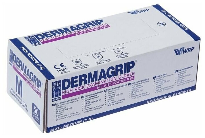 Перчатки латексные Смотровые WRP DERMAGRIP High Risk, 25 пар, размер S информация: