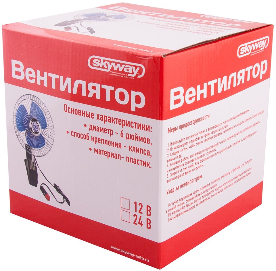 Вентилятор автомобильный 6 дюймов, 24V SKYWAY на клипсе металл-пластик