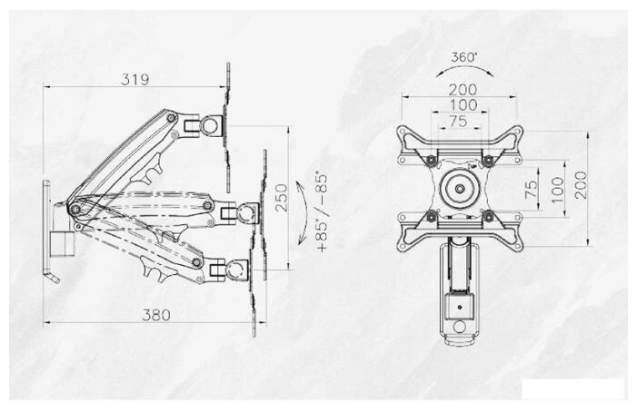 Кронштейн для телевизоров на струбцине North Bayou NB F80 17"-30", нагрузка 9 кг, с газлифт, черный