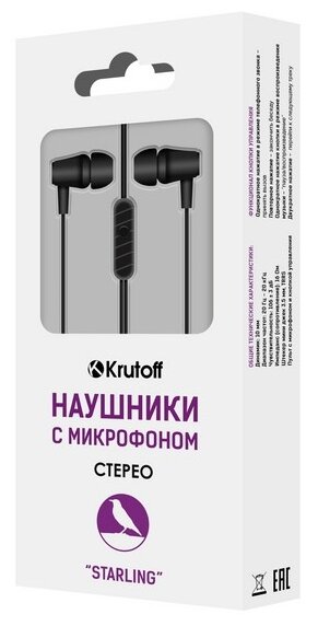 Наушники с микрофоном Krutoff Starling (черные) информация: