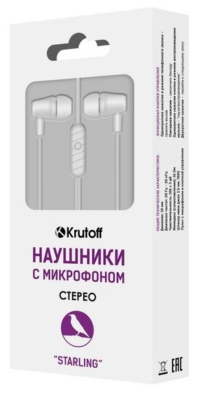 Наушники с микрофоном Krutoff Starling (белые) информация: