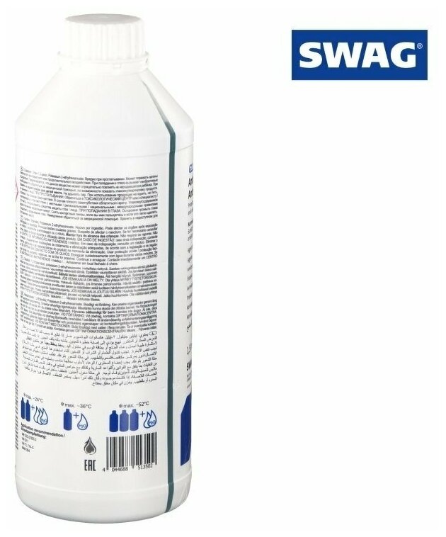 SWAG 99901089 Антифриз (концентрат) 1,5л, синий, G11, MAN 324 NF, MB 325.0, MB 325.2, VW TL 774-C 1шт 2 190 ₽