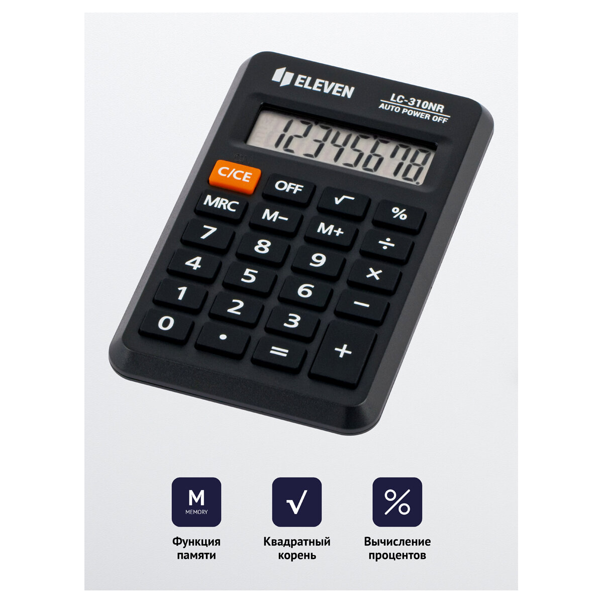 Калькулятор карманный Eleven LC-310NR, 8 разрядов, питание от батарейки, 69*114*14мм, черный информация: