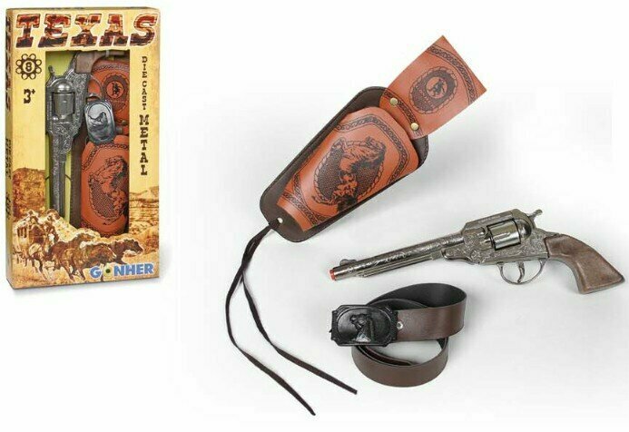 Отзывы на Texas Ковбойский набор — металлический револьвер 27,5 см 8 пистонов с кобурой и ремнем Gonher 150/0