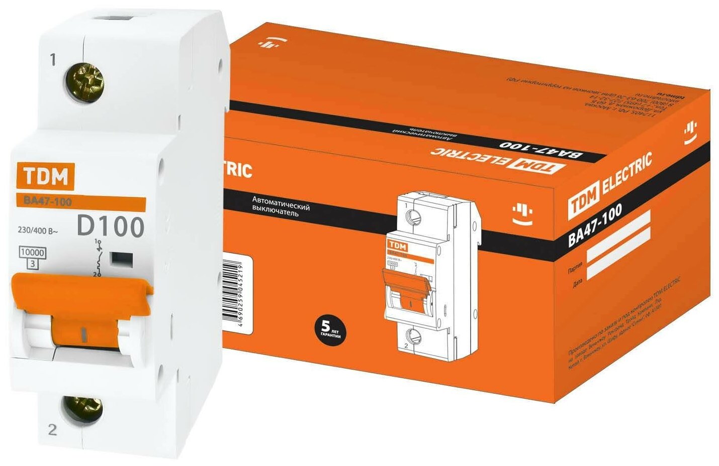 Автоматический выключатель ВА47-100 1Р 100А 10кА х-ка D TDM SQ0207-0011 (1 шт.) информация: