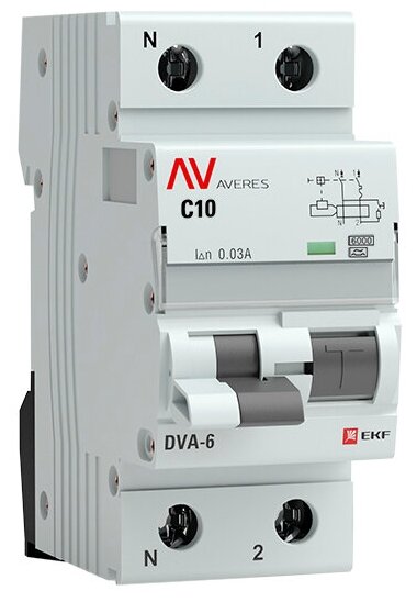 Отзывы на Выключатель автоматический дифференциального тока (диф автомат) DVA-6 10А 1П+Н (C) 30мА (A) 6кА AVERES rcbo6-1pn-10C-30-a-av EKF