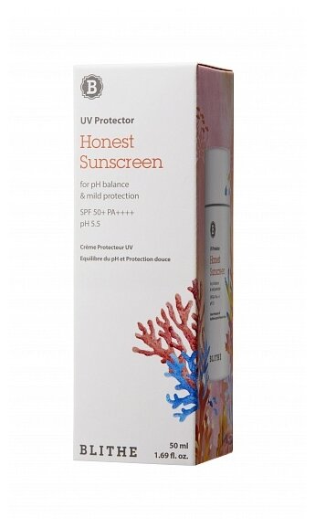 BLITHE Honest Sunscreen Солнцезащитный крем SPF 50+ PA ++++ 50 мл