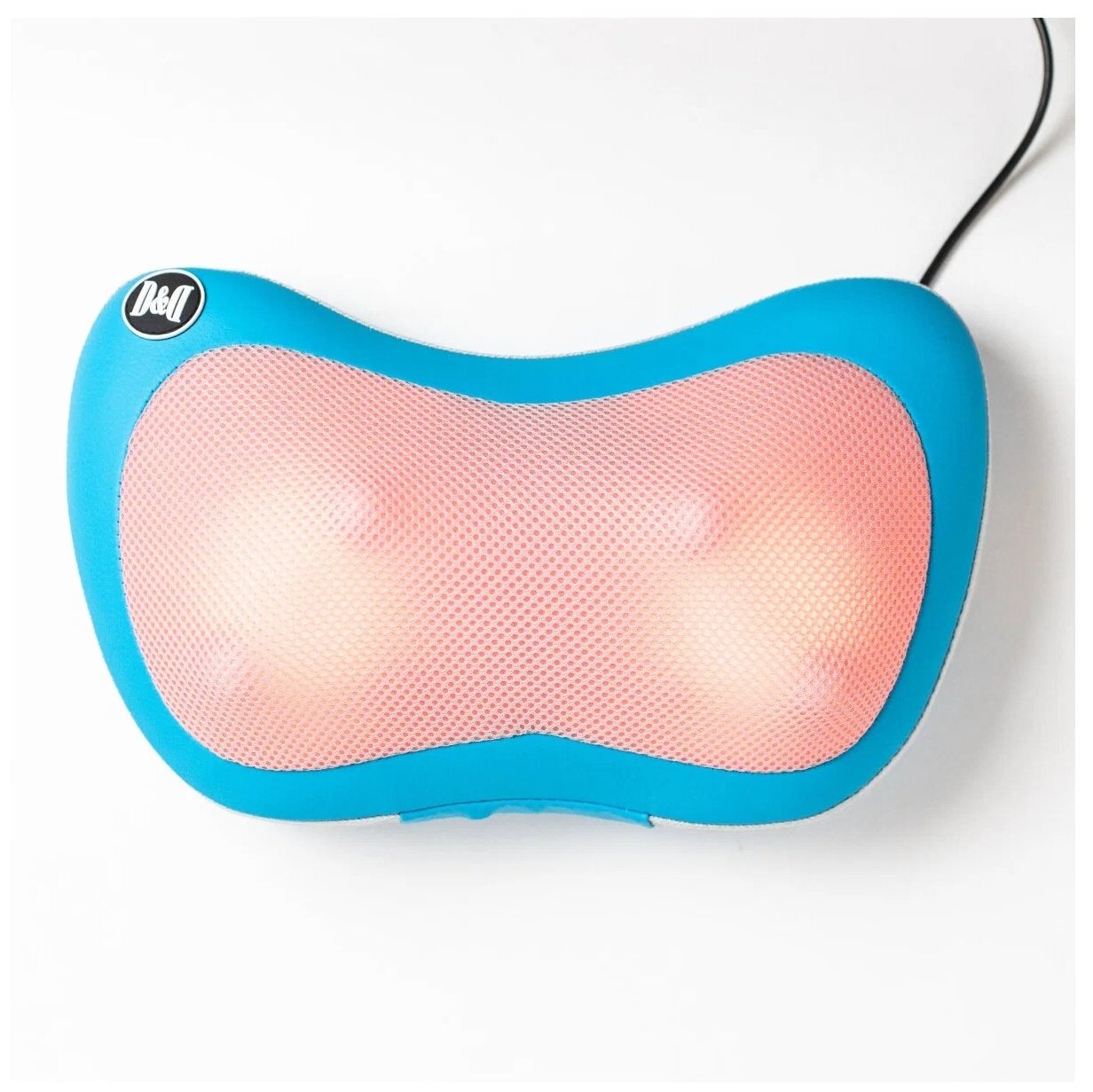 Массажная подушка D&D UM-02, массажер для шеи, спины и тела, роликовая, с ИК-прогревом для дома и автомобиля, голубая