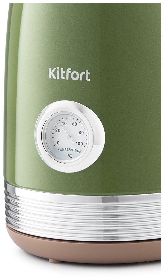 Чайник KITFORT КТ-6110, 1,7 л, 2200 Вт, закрытый нагревательный элемент, сталь, зеленый/бежевый