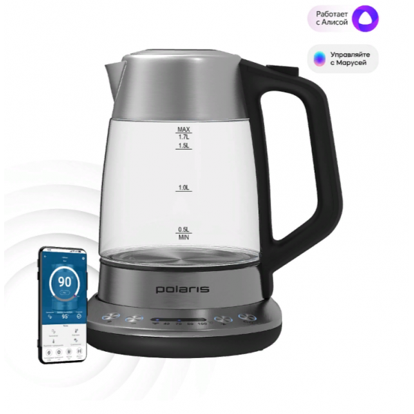 Чайник Polaris PWK 1775CGLD WIFI IQ Home, серебристый без подсветки информация: