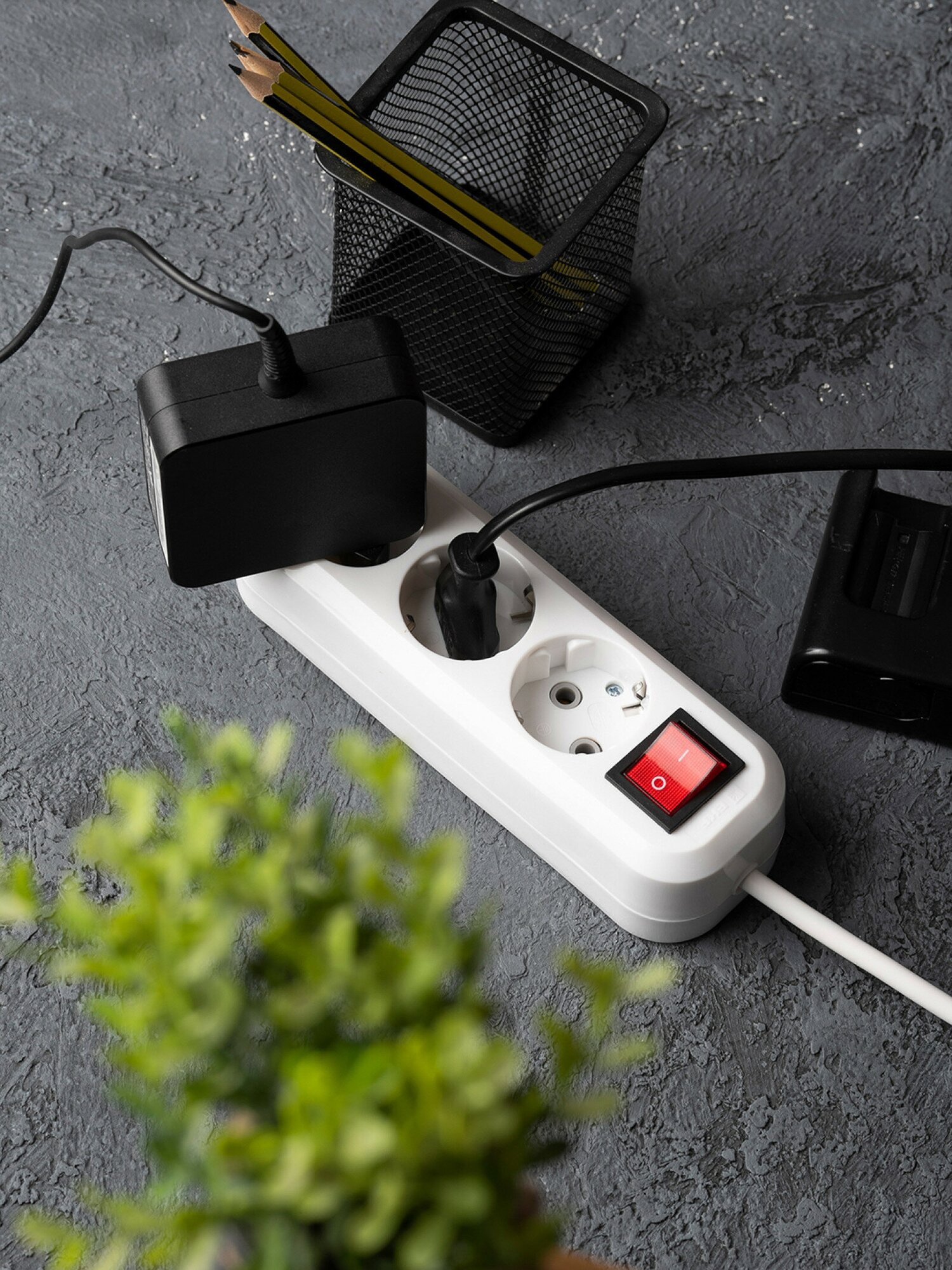 Удлинитель бытовой с выключателем и заземлением, 3 розетки, 2 метра, Эксперт (16А-3,5кВт, ПВС)