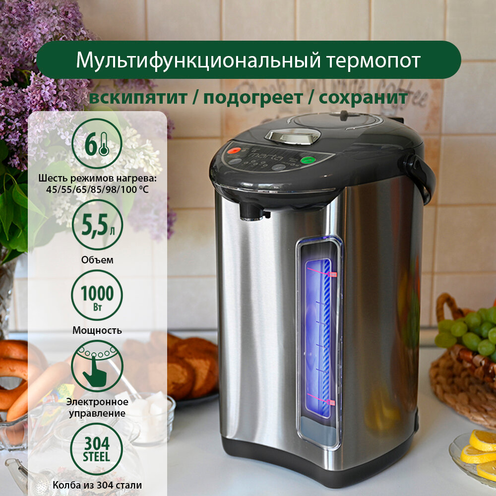 Термопот Marta MT-1999 серый жемчуг информация: