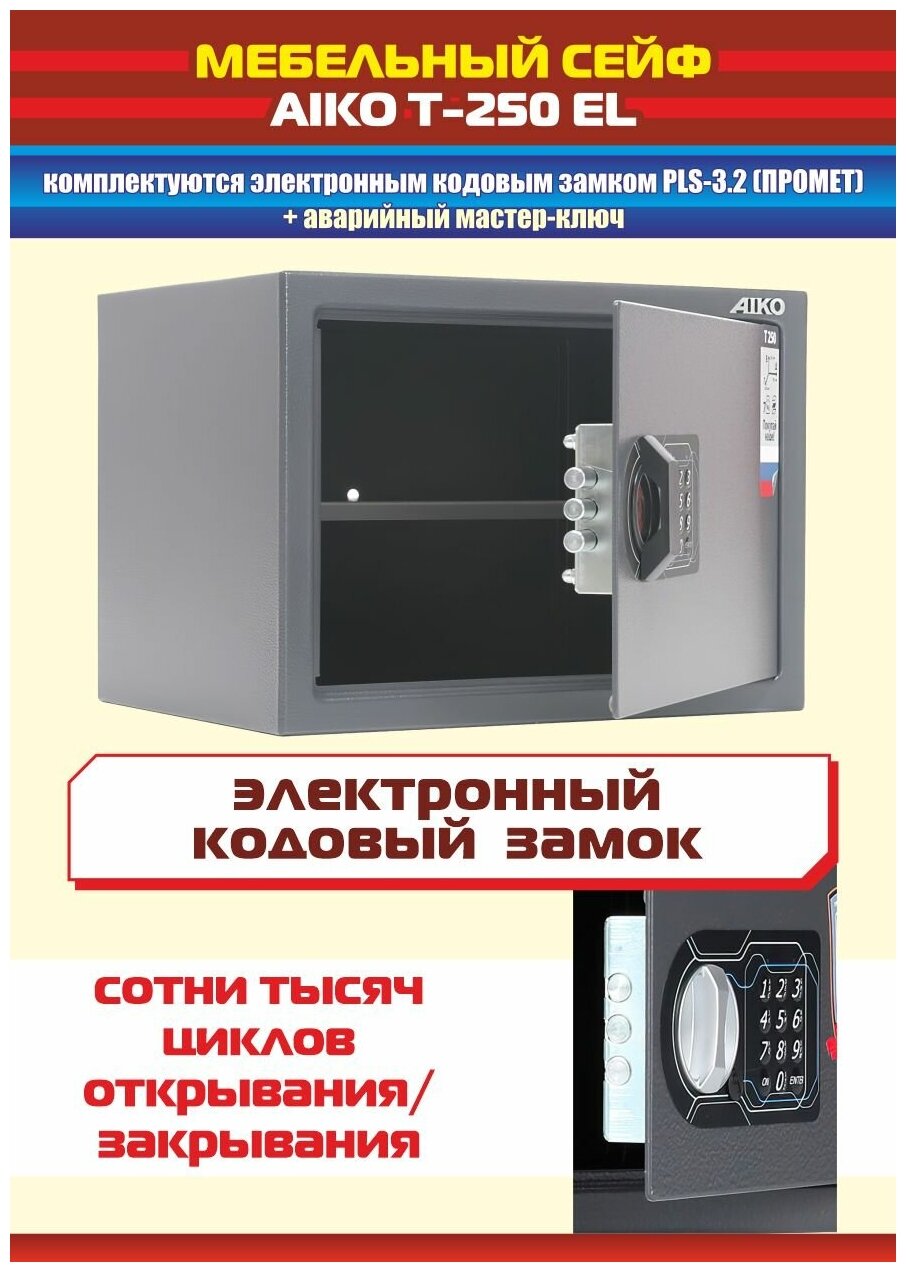 Сейф AIKO T-250 EL для денег и документов для дома/офиса 250x350x250 мм, электронный замок информация: