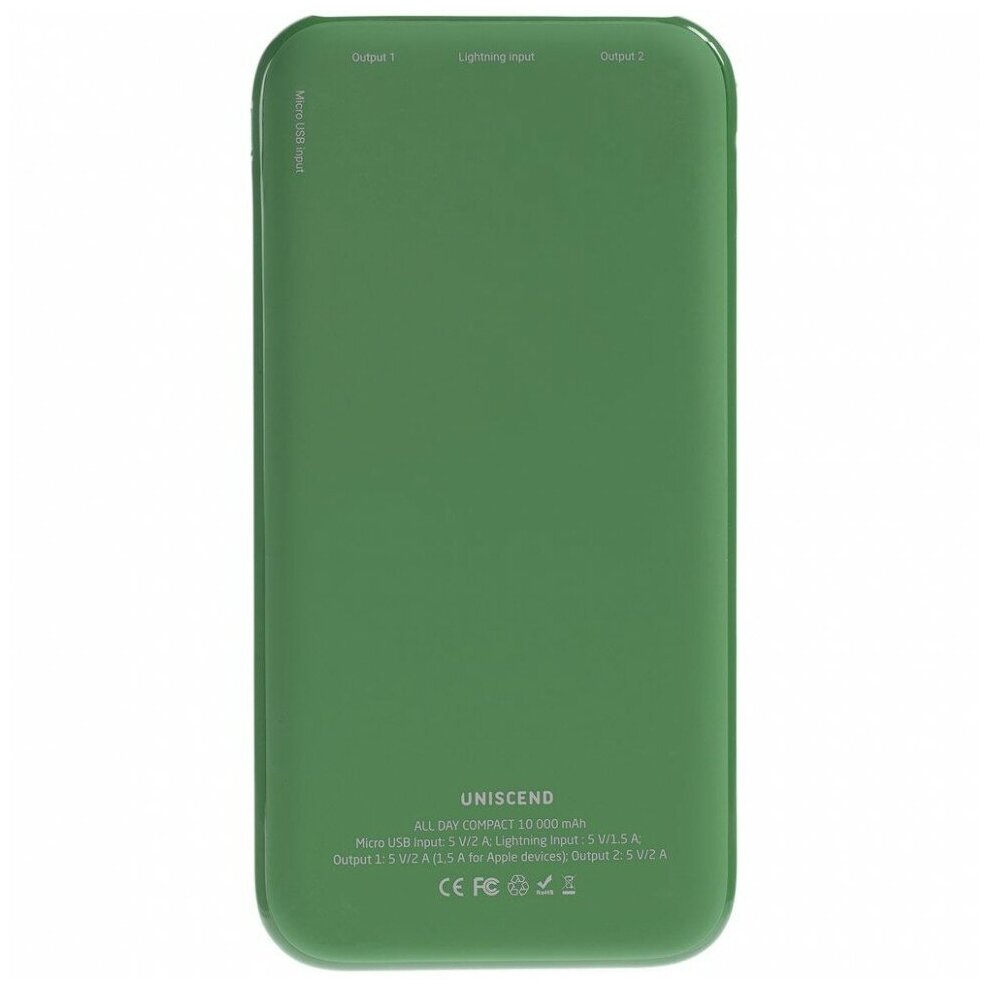 Внешний аккумулятор Uniscend All Day Compact 10000 мАч, зеленый, 7,5х14,7х1,4 см; упаковка: 10x18,8x2,4 см, пластик; покрытие софт-тач