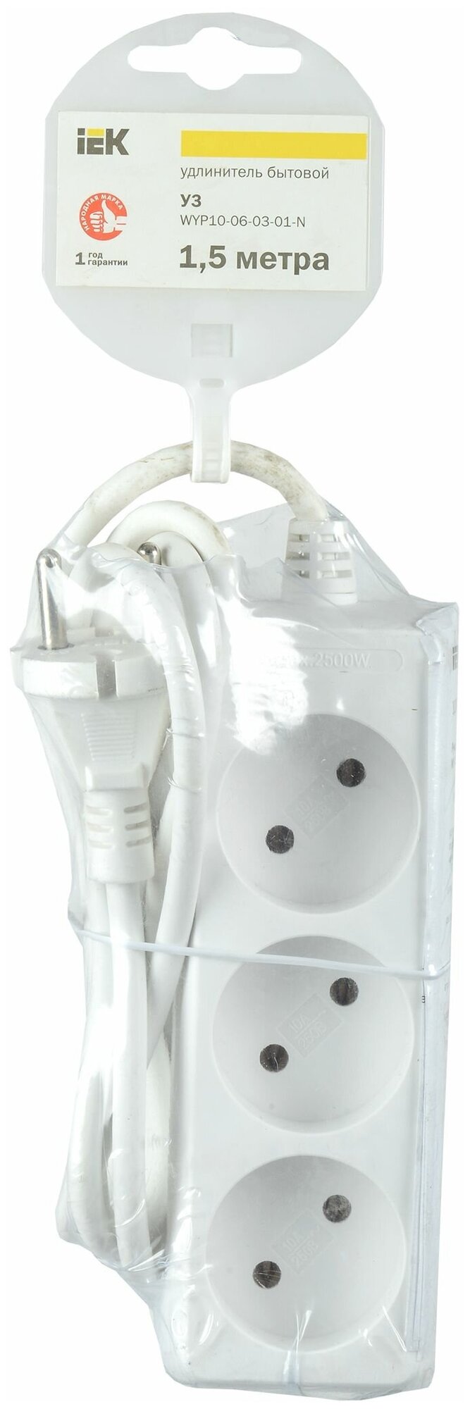 Удлинитель Iek У3 3 места 2P/1,5 метра 2х0.75мм2 10А/250В, WYP10-06-03-01-N