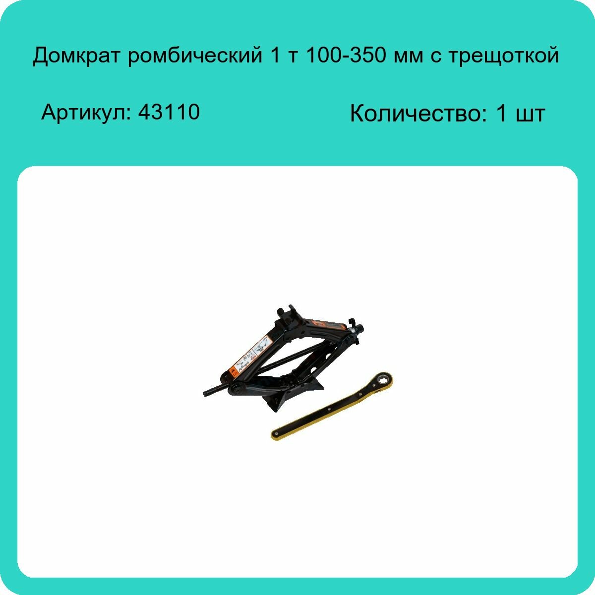 домкрат ромбический 1,0т с трещоткой (100-350мм) (автодело) 43110