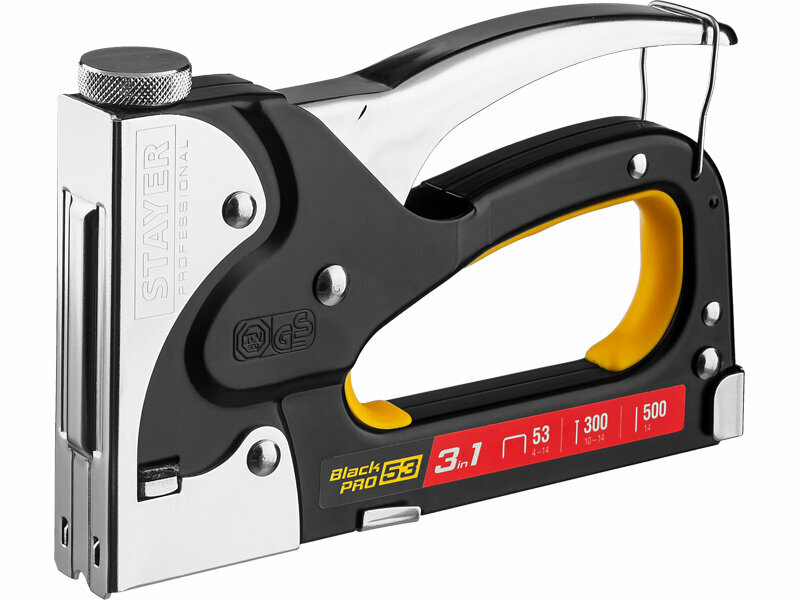 Степлер для скоб "BlackPro 53" 3-в-1: тип 53 (4-14 мм) / 300 (10-14 мм) / 500 (14 мм), Stayer Profes .