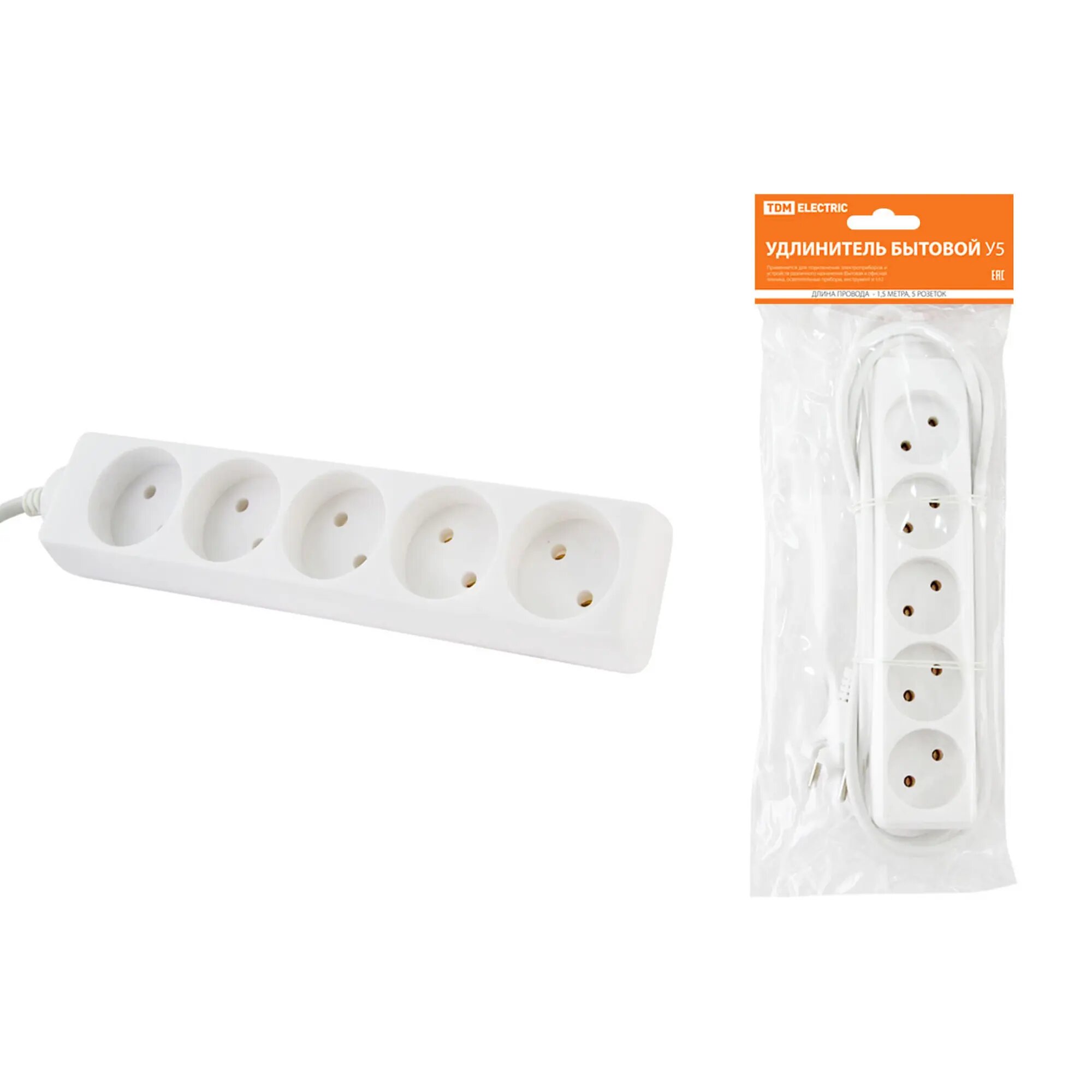 Удлинитель бытовой У5 5 гнезд, 1,5метра, без заземления, ПВС 2х0,75мм2 10А/250В TDM