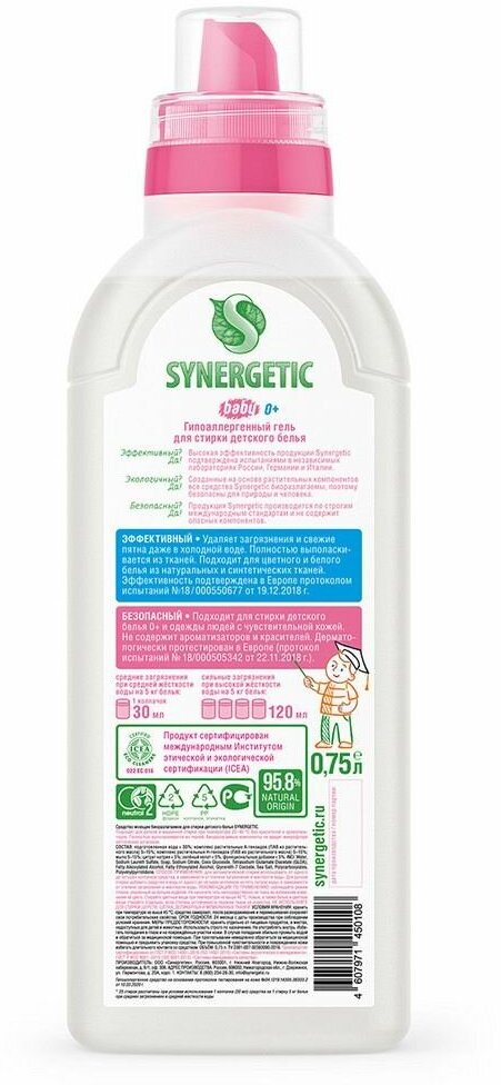 Synergetic Гель для стирки белья Детский 0,75 л информация: