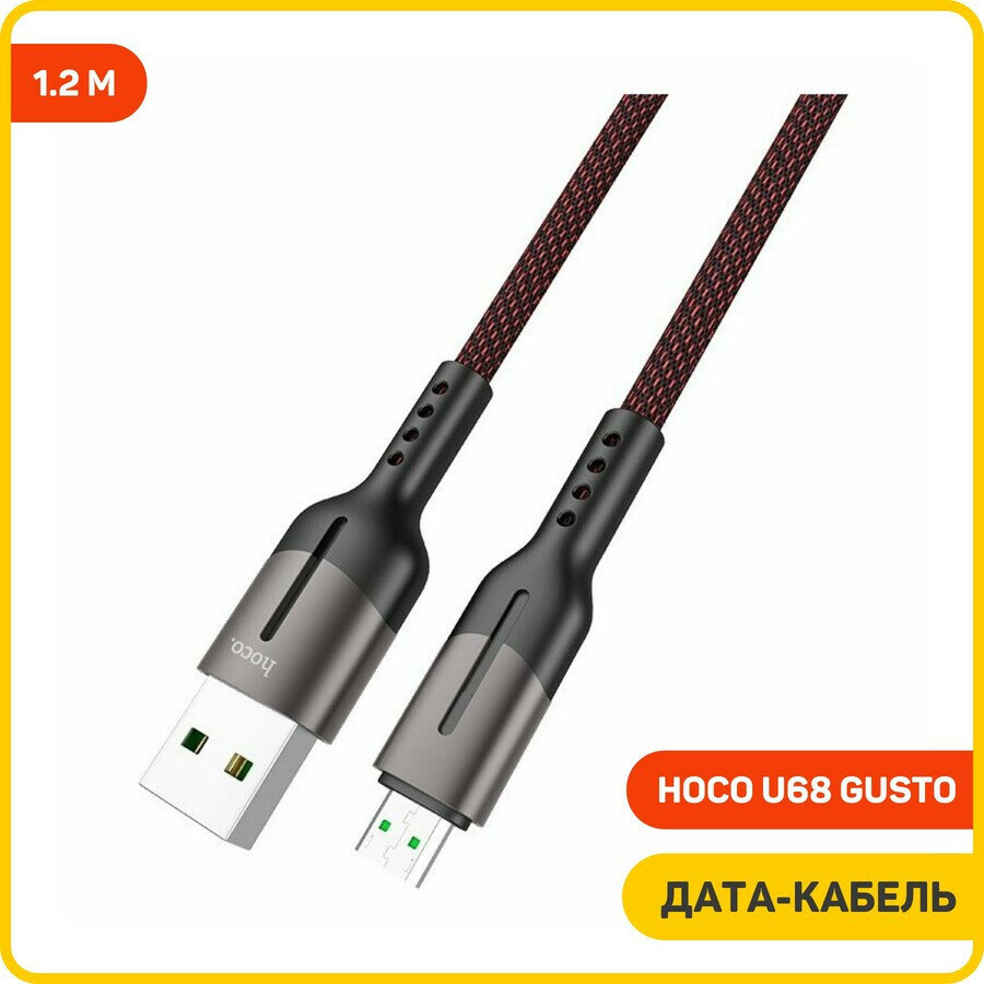 Дата-кабель Hoco U68 Gusto USB-MicroUSB (4 A) 1.2 м, черный информация: