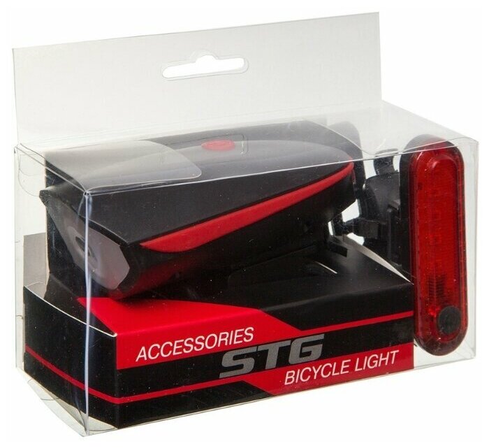 Фонарь велосипедный STG комплект задний и передний, черный/красный, пластик
